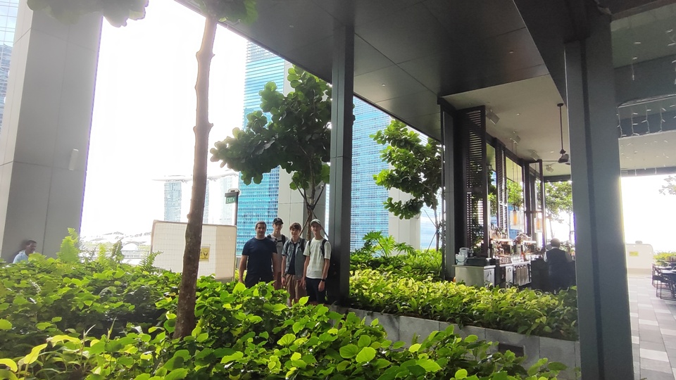 Másnap rögtön felfedezőútra indultunk, előszöra Chinatown felé vettük az irányt. Már itt rájöttünk, hogy teljesen más világba csöppentünk, kicsit úgy éreztük magunkat, mintha Alice Csodaországban járna. Hatalmas épületek és rengeteg felhőkarcoló vett körül bennünket. Útközben engedtünk a csábításnak, és felmentünk egyik tetejére, ahol egy zöld, növényekkel teli tetőkert fogadott minket – erre igazán nem számítottunk. Innen pillantottuk meg először a Marina Bay Sands ikonikus épületét, amely valóban lenyűgöző látványt nyújtott. Az időjárásra sem lehetett panaszunk, hiszen végig 30 °C körüli, sőt inkább afeletti hőmérséklet uralkodott.