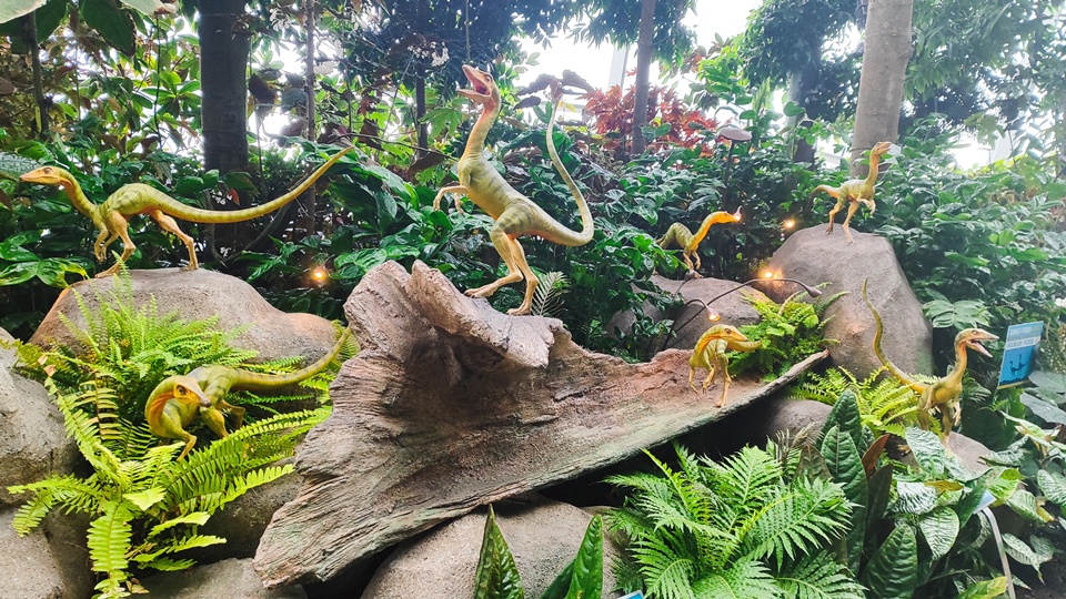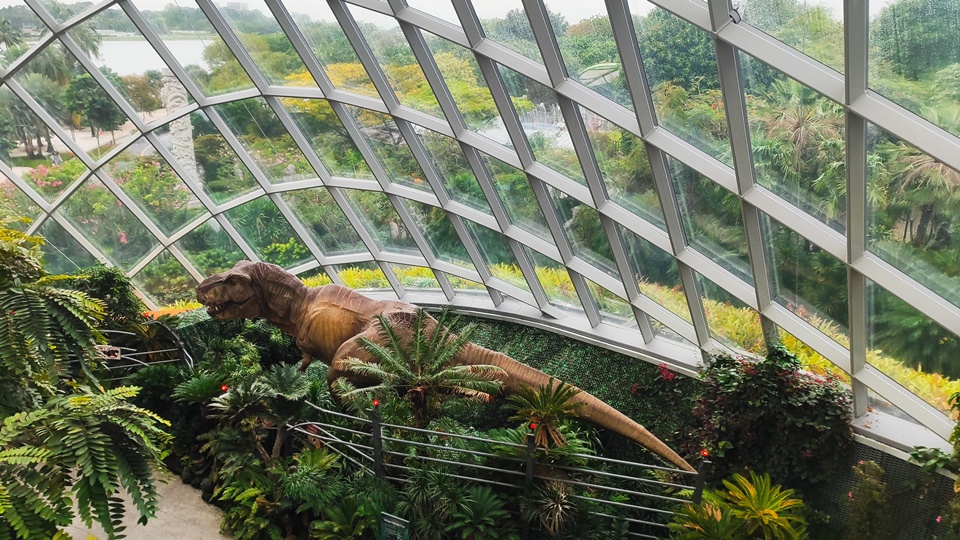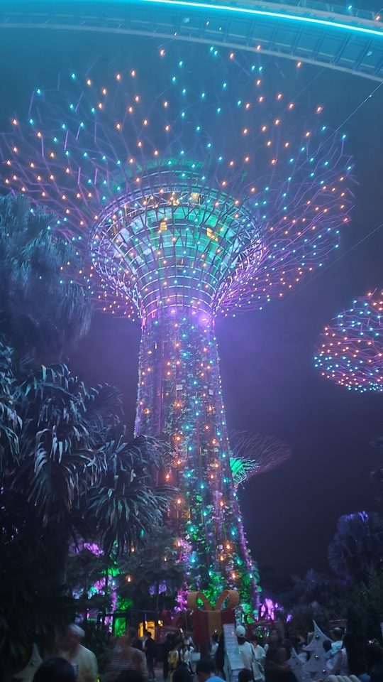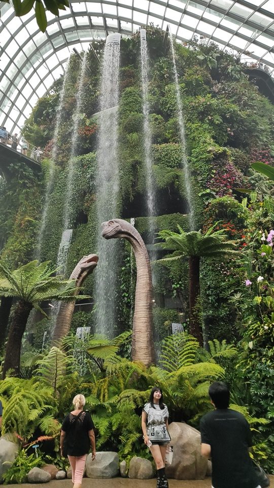 Ha már ott voltunk, ellátogattunk a Gardens by the Bay kertjeibe is. A hatalmas mesterséges „szuperfák” és az egész környezet igazi mesevilágba repített minket. Két üvegházat is megnéztünk: az egyikben a világ minden tájáról származó különleges növényeket láthattunk, a másikban pedig szinte a Jurassic Parkba csöppentünk. Élethű, mozgó dinoszauruszok, hanghatások és egy többemeletes vízesés tette teljessé az élményt. Este megnéztük a Garden Rhapsody fény- és zenei show-t, amely a 20–25 méter magas, növényekkel borított fémszerkezeteken igazán sci-fi hangulatot teremtett.