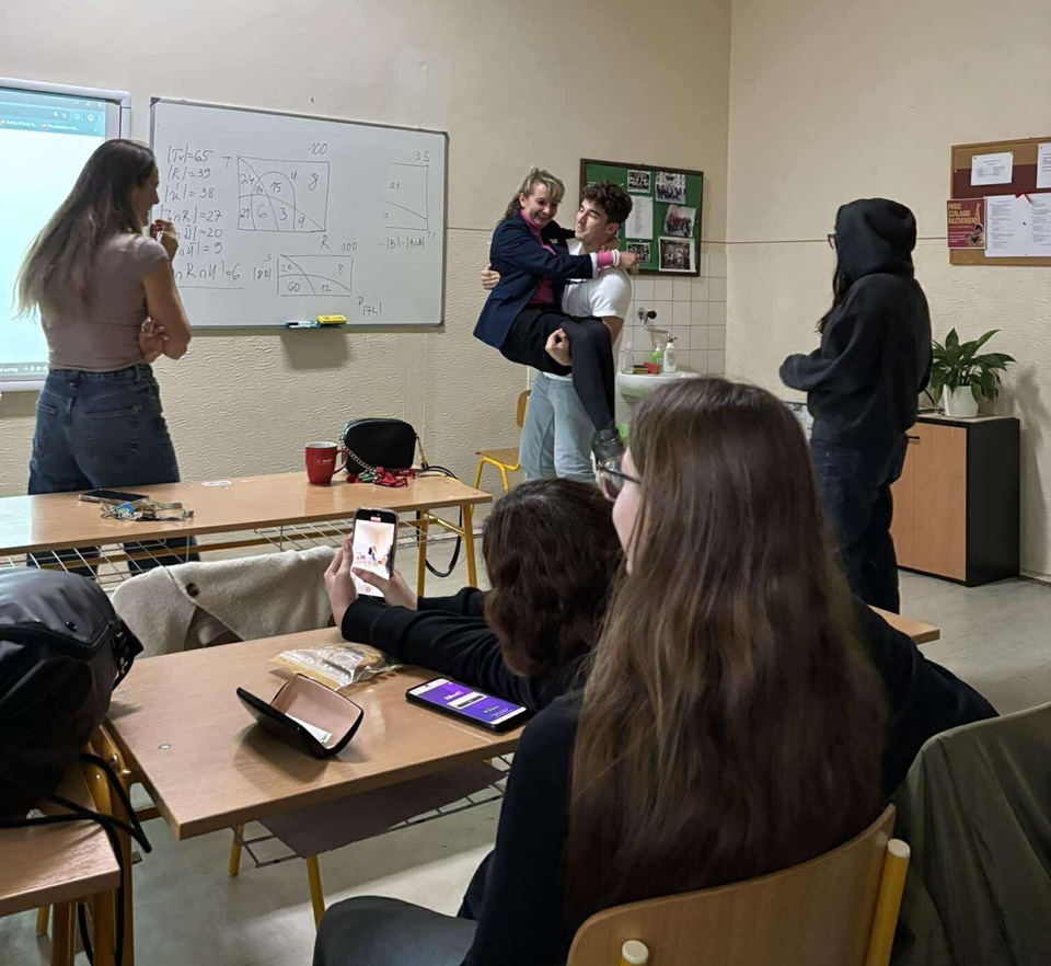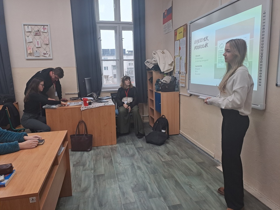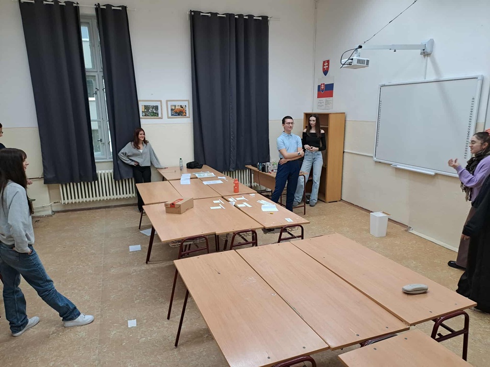 A nap egyik legnépszerűbb programja a „fordított óra” volt, ahol a diákok vették át a tanári szerepet. Rengeteget készültek, ötleteltek, az órán kezelték a rakoncátlankodó tanárdiákok megnyilvánulásait, ezért megérdemlik, hogy megemlítsük a nevüket! Az I.A osztályban Száraz Zsófia és Hriagyel Áron tartották az órát, az I.B-ben Táborská Lucia és Horváth Zita léptek a tanári szerepbe. A II.A-ban Baráth Bence vezette a foglalkozást, míg a II.B-ben Horváth Gréta és Gergely Melánia vállalták a kihívást. A III.A-ban Mátyás Bálint mutatta meg, hogyan képzeli el az oktatást, a III.B-ben pedig Hodosi Levente volt a diáktanár. A IV.A osztályban Šillo Dominik, a IV.B-ben pedig Čerňanská Tímea tartotta a fordított órát. Kreatív megoldásokkal, játékos feladatokkal és saját ötleteikkel tették élménnyé a tanulást – nemcsak szórakoztató, hanem rendkívül tanulságos is volt mindkét oldal számára.