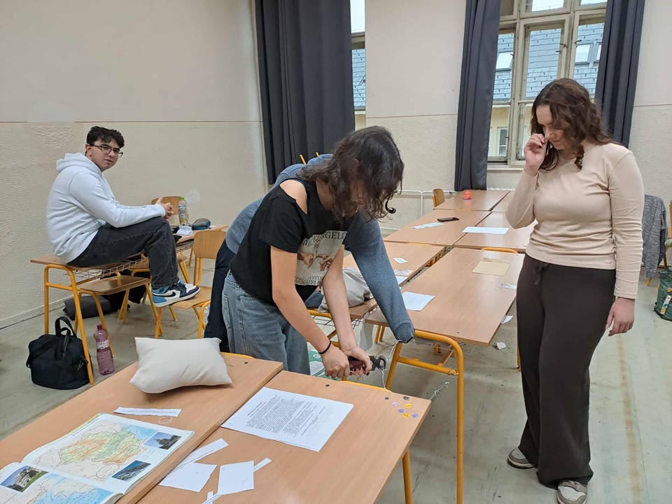 Az izgalmakat tovább fokozta a történelem szemináriumot látogató diákok által szervezett szabadulószoba. Az osztályoknak logikai feladatok és történelmi rejtvények megoldásával kellett kijutniuk – igazi csapatmunka és tudáspróba volt! A program koordinálását Borka László tanár úr végezte, aki rengeteget dolgozott azon, hogy minden részlet tökéletes legyen. Az ő lelkesedése és szervezőkészsége nélkül ez a különleges élmény nem valósulhatott volna meg.
