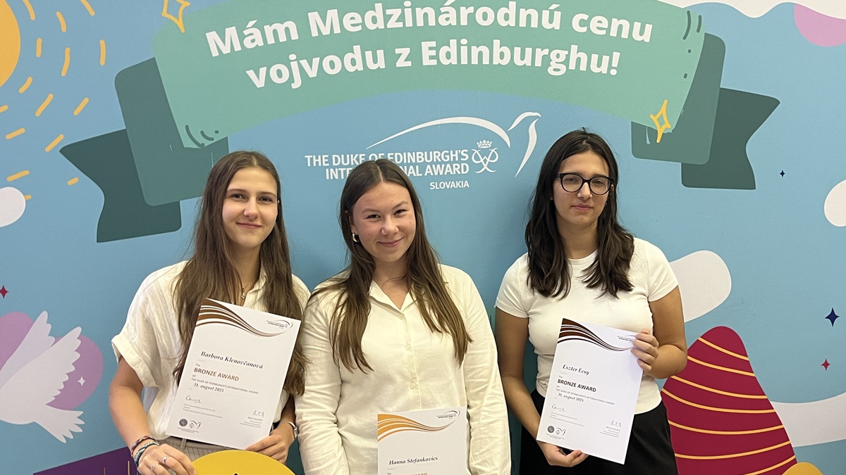 Idén szeptember 25-én különleges pillanatnak lehettünk tanúi: három harmadikos diákunk – Écsy Eszter, Stefankovics Hanna és Klenovčanová Barbora – ünnepélyes keretek között vehette át a bronz fokozatot igazoló elismerő oklevelet a Comenius Egyetem Pedagógiai Karának aulájában. A lányok nemcsak teljesítették a kihívást, hanem máris új célokat tűztek ki: az ezüst fokozat elérése felé tartanak!