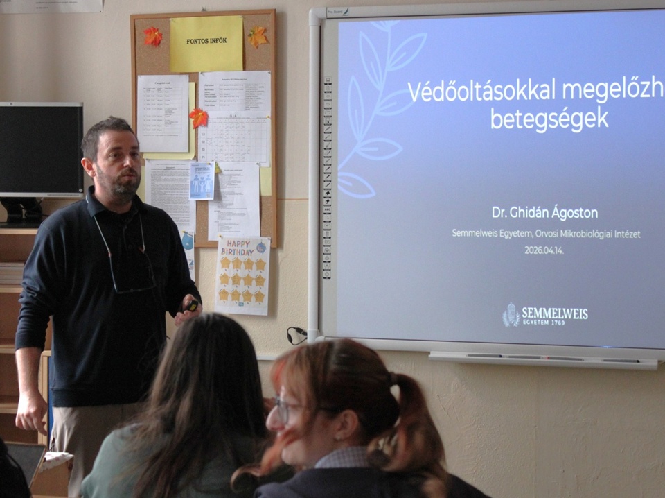 Április 14-én újabb neves vendégelőadókat fogadott iskolánk. Prof. habil. Kovács József PhD, DSc a Szigetköz felszíni és felszín alatti vizeiről tartott szemléletes előadást, majd Prof. habil. Hatvani István Gábor PhD a jégfuratkutatások világába vezette be diákjainkat. Dr. Ghidán Ágoston előadásában a védőoltásokkal megelőzhető betegségekről beszélt, hangsúlyozva a megelőzés fontosságát. Eközben az osztályok kreativitásukról is tanúbizonyságot tettek, hiszen egymás után készültek a látványosabbnál látványosabb gyümölcs‑ és zöldségtálak. A feladat verseny keretében zajlott, melynek során a zsűri a legkreatívabb összeállításnak az I.A osztály munkáját ítélte. A 2. helyen az I.B végzett, míg a megosztott 3. helyet a IV.B és a III.A osztály érdemelte ki.