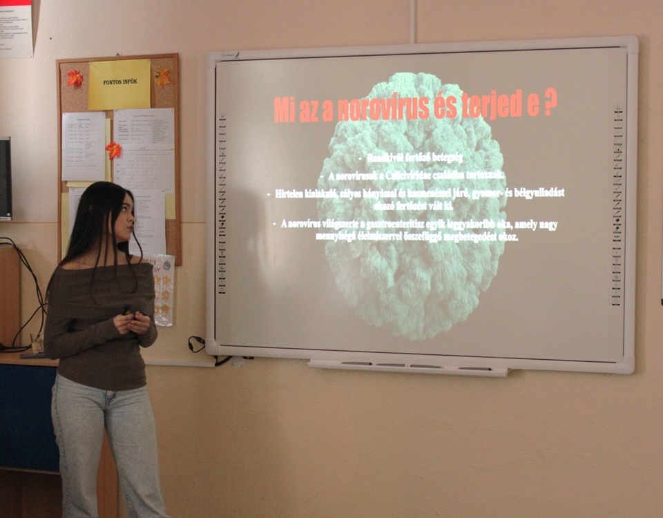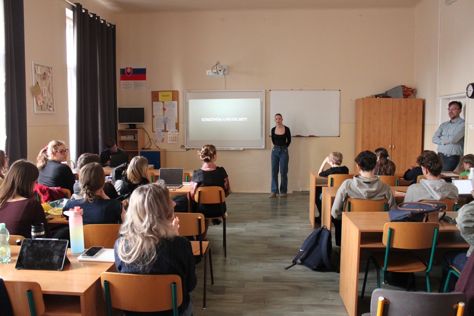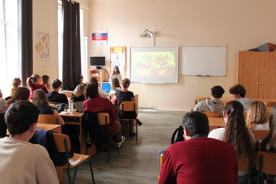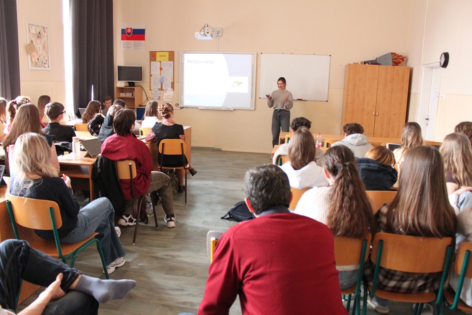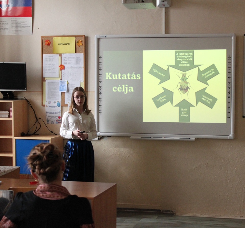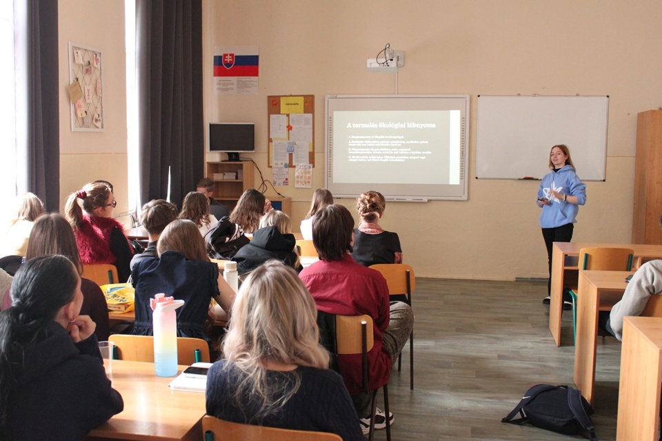Ezt követően Doc. Mgr. Matušík Ildikó PhD. tartott izgalmas előadást a húsevő növények különleges világáról, majd Mgr. Fandlová Marta prezentációját hallgathattuk meg, amelyben a globális felmelegedés veszélyeire és a lehetséges megoldásokra hívta fel a figyelmet. Vendégelőadóként ellátogattak iskolánkba a Szenczi Molnár Albert Alapiskola tanulói is, akik saját kutatómunkájuk eredményeiről számoltak be. A nap folyamán a résztvevők egészséges ételeket kóstolhattak a tanáriban, a program pedig egy környezetvédelmi témájú Kahoot-játékkal zárult az osztályok számára. A játék nemcsak szórakoztató, hanem versengésre ösztönző volt, hiszen eredménye beszámított az osztályok közötti összesített versenybe. A Kahoot‑játék helyezettjei: 1. IV.B, 2. III.A, 3. III.B.