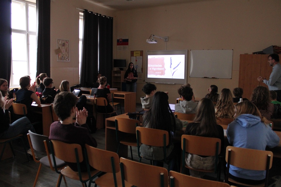 Április 15-én az aktívan bekapcsolódó diákokat jutalom várta: tanulmányi kirándulás a Kis‑Kárpátokba. A résztvevők a Veľká Homoľa kilátóig vezető túra során testközelből tapasztalhatták meg a természet szépségét, majd kirándulásuk Modra városának meglátogatásával folytatódott. A közös élmények, a friss levegő és az új ismeretek méltó lezárását adták a háromnapos programsorozatnak, melyről a tanulók élményekkel gazdagodva térhettek haza.