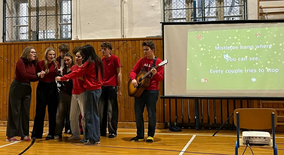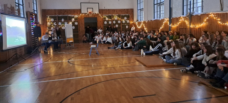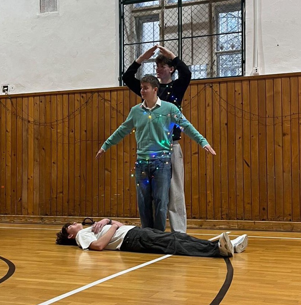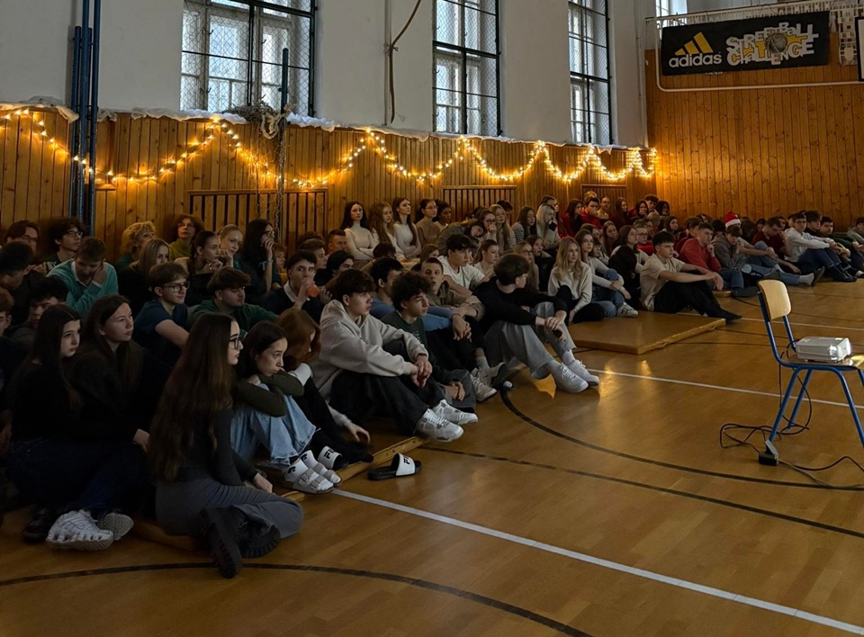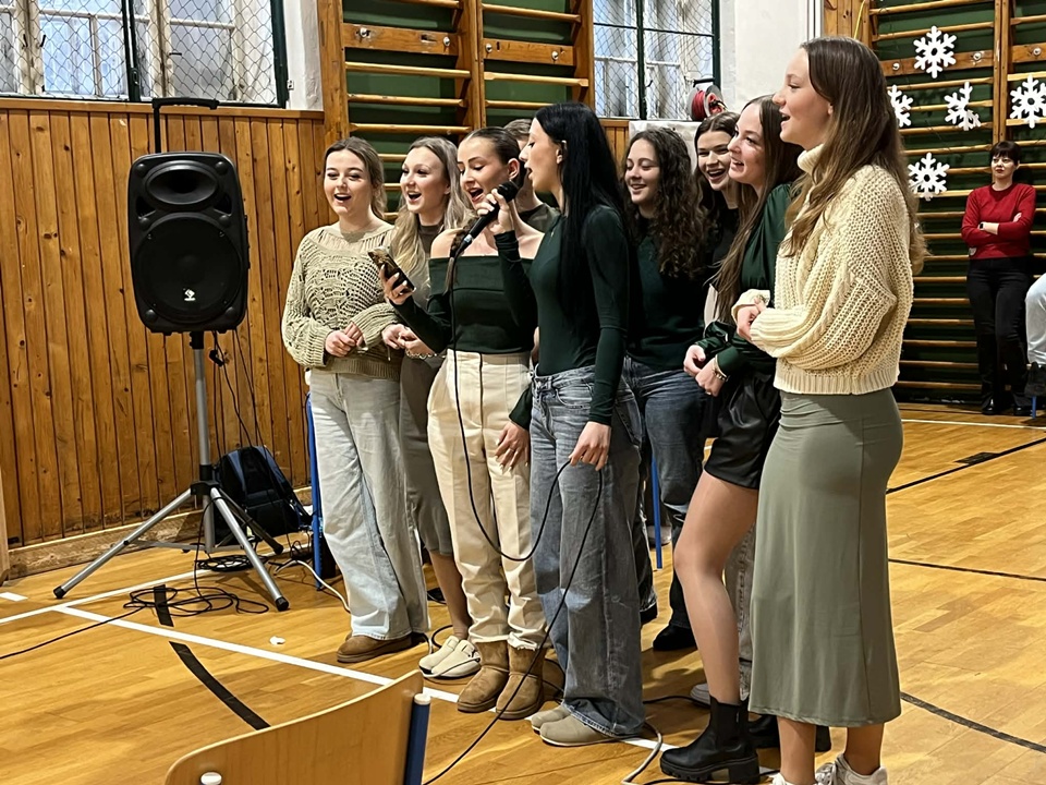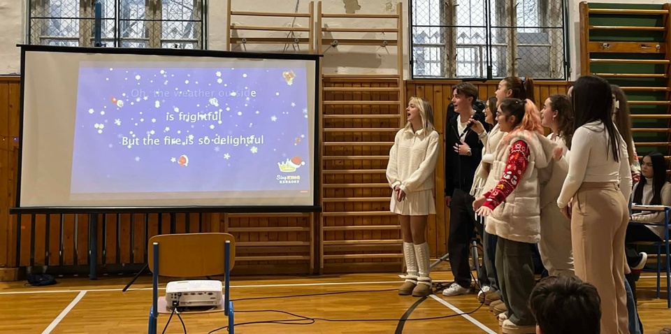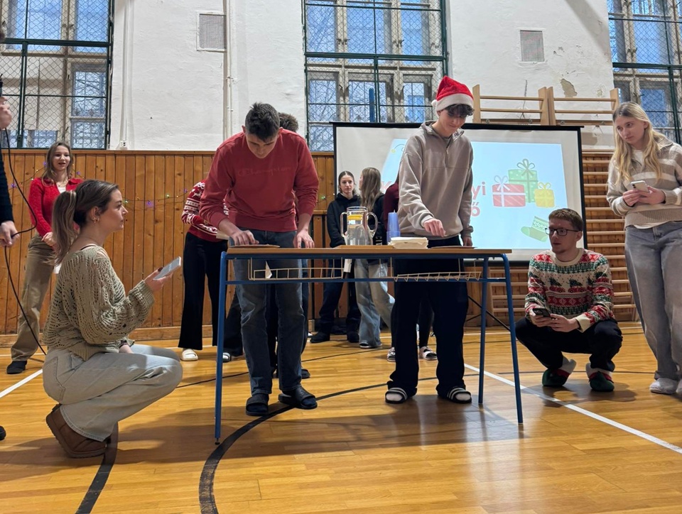 Mielőtt azonban átadtuk volna magunkat az önfeledt szórakozásnak, az OZ Misie polgári társulás képviselőinek előadása emlékeztetett minket a hála fontosságára: a tanzániai missziós tevékenységükről készült filmkockák megmutatták, hogy a szeretet, szerencsére, ott is jelen van, ahol az ünnepek nem a bőség, gazdag ajándékok és jó ételek jegyében telnek. Ezt követően a diákoké volt a főszerep. Az ügyességi feladat után, mely ezúttal, alkalomhoz illően, egy mézeskalácsevő-verseny volt, a tavaly már fergeteges sikert aratott improvizációs feladattal kacagtatták meg az osztályok képviselői nemcsak a zsűrit, hanem az egész nézőközönséget. Nem hiányozhatott azonban a karácsonyi Kahoot sem, melyben, többek közt, kiderült az is, mi a III.B-s Levink kedvenc karácsonyi filmje, végezetül pedig az egyes évfolyamok dalos pacsirtái brillírozhattak a karácsonyi karaoken belül. A közös ünneplést az év utolsó osztályfőnöki órája zárta, majd kiürültek az osztálytermek, csendbe burkolóztak iskolánk folyosói.