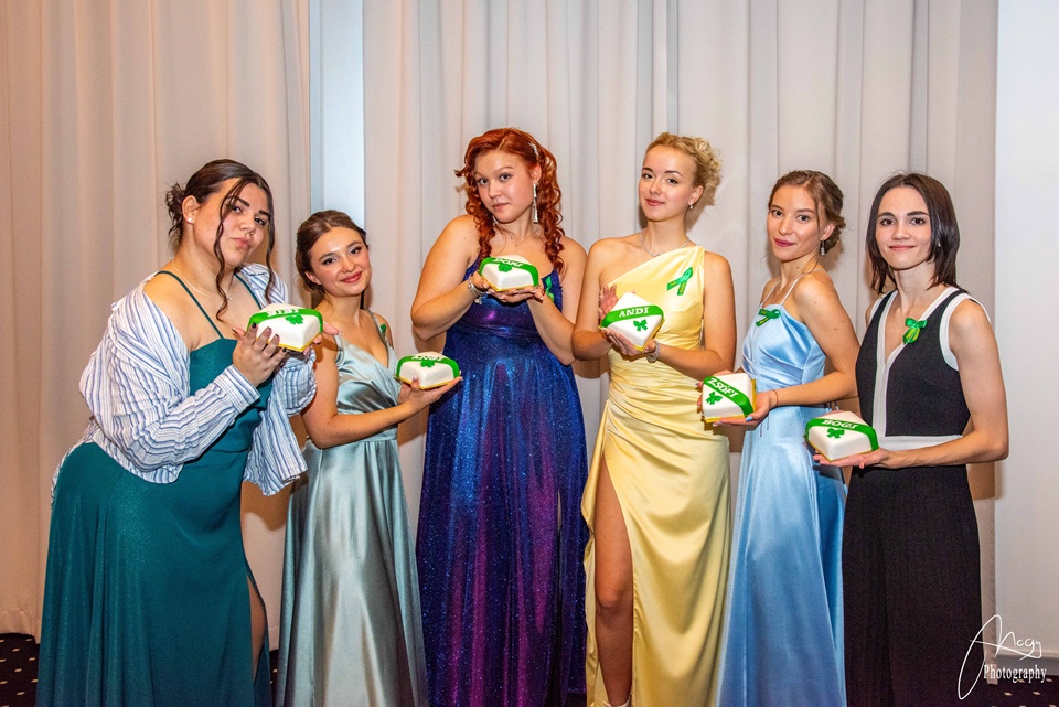 Egy különleges estének lehettünk a részesei, amely sok-sok szép emléket hagyott maga után. A szórakozás mellett azonban éreztük: hivatalosan is elkezdődött valaminek a vége, és az együtt töltött időnk hamarosan lejár. Erre emlékeztet bennünket a ruhánkra tűzött zöld szalag is, amely nemcsak a jövőbe vetett hitünket jelképezi, hanem szimbóluma mindannak, amit közösen megéltünk, és annak a négy évnek, amelyet soha nem felejtünk el.
