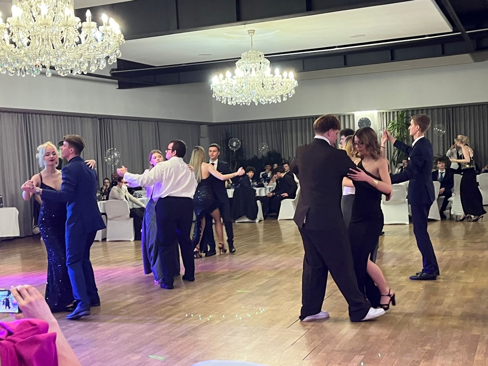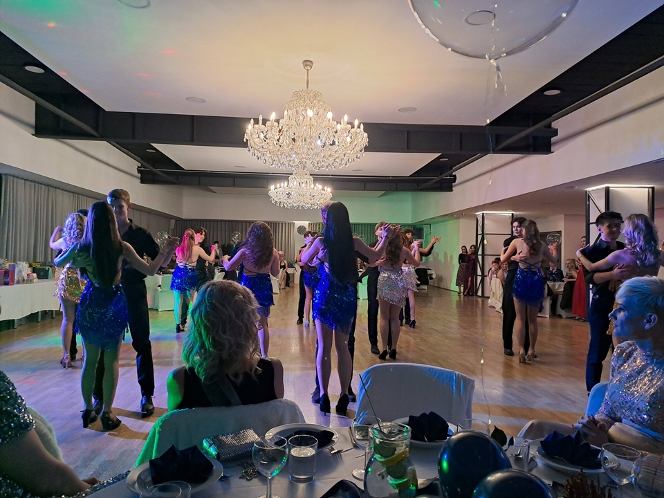 A kora délután kezdődő bál egy ízlésesen feldíszített teremben vette kezdetét. A nyitótáncot – egy lendületes salsát – a diákok Janda tanárnő vezetésével tanulták be. A fergeteges táncot ízletes vacsora követte, majd sor került a bálkirálynő és a bálkirály megválasztására. A legszebb tánc díját a harmadikos Somogyi Fanni és Bergendi Dávid érdemelte ki, akik ráadásként a közönség előtt egy romantikus tangóval is elkápráztatták a jelenlévőket.