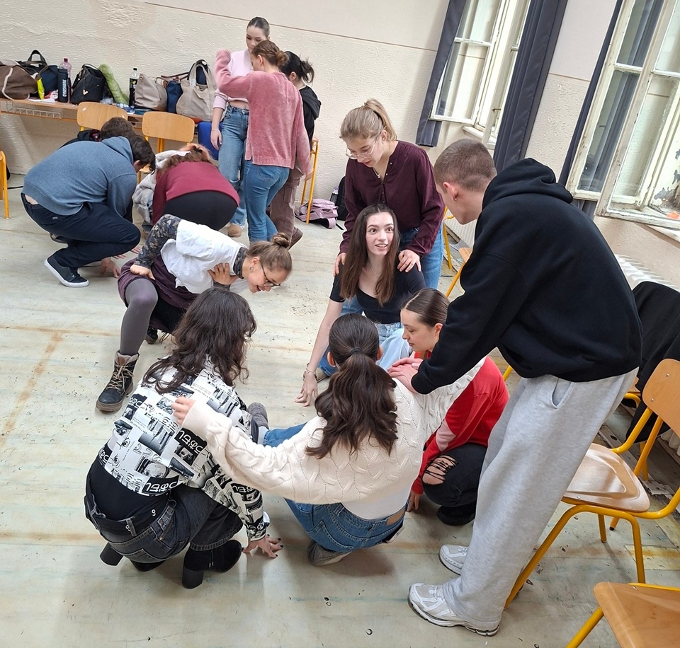 A délelőtt második felében két választható program közül dönthettek a tanulók. Az egyik az önismereti foglalkozás volt Győri Zsófia iskolapszichológus vezetésével, amelyen a résztvevők különböző gyakorlatokon keresztül fedezhették fel saját erősségeiket, érdeklődési területeiket és azt, hogyan illeszkednek ezek a jövőbeli terveikhez. A másik programot a Vekker Műhely kreatív csapata vezette, amely improvizációra és dramatikus játékokra épülő közösségépítő tréninget kínált. Ez a foglalkozás nemcsak szórakoztató volt, hanem segítette a diákokat abban, hogy bátrabban kommunikáljanak, jobban együttműködjenek és nyitottabbak legyenek az új helyzetekre. Mindkét program jelentkezéses alapon zajlott, így a diákok saját érdeklődésük szerint választhattak.